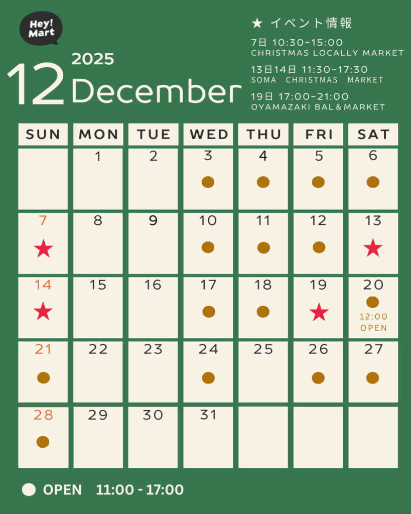 急な変更などある場合は、Hey! MartのInstagramにてお知らせいたします。