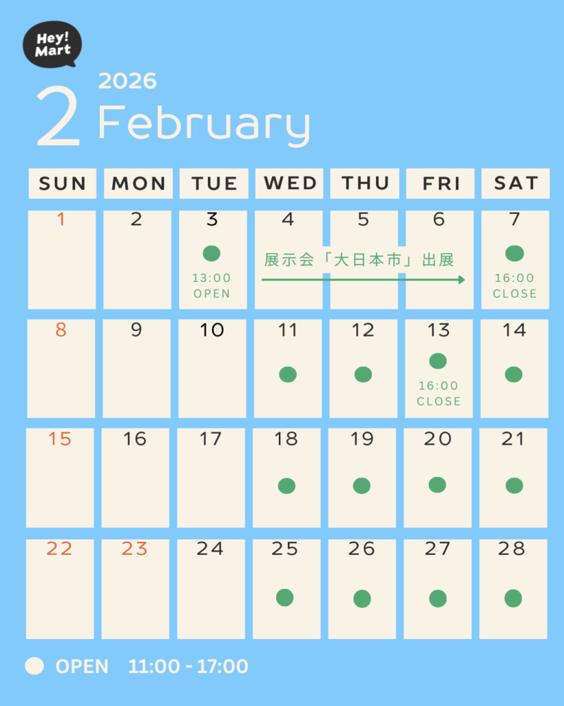営業時間:水・木・土 11:00 - 17:00(日曜不定休)